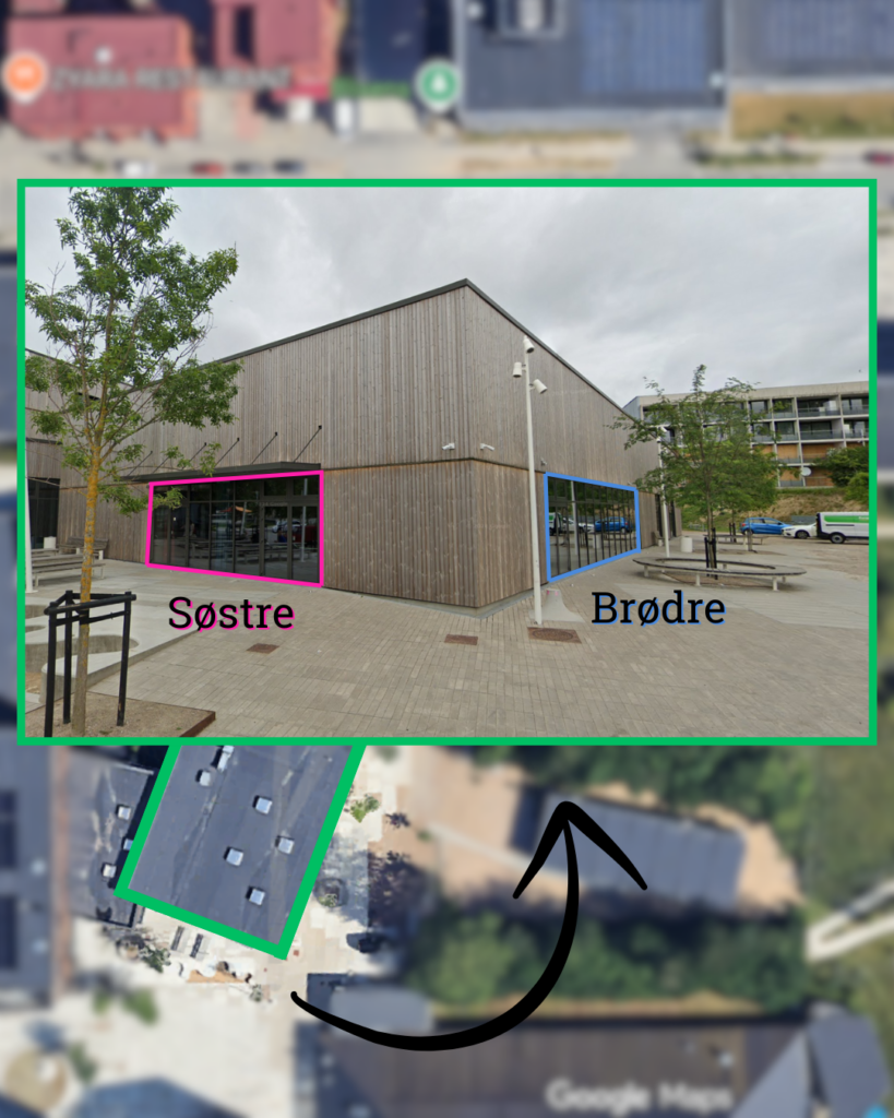Der er 2 indgange til Store Sal. Den ene er til brødre og den anden er til søstre. Der vil være frivillige til at tage imod dig og registrere dit navn, når du kommer ind ad indgangen. Vedhæftet er et billede, hvor du kan se de to forskellige indgange.